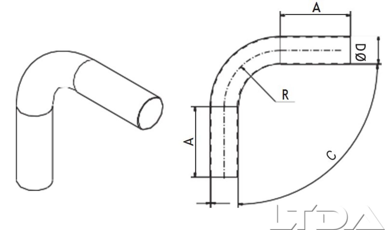Coude de 90° en acier galvanisé 102mm Ce coude de 102mm de diamètre vous sera utile si vous décidez de construire votre propre réseau pour aspirateur central. A= 189 R= 130 C= 90°