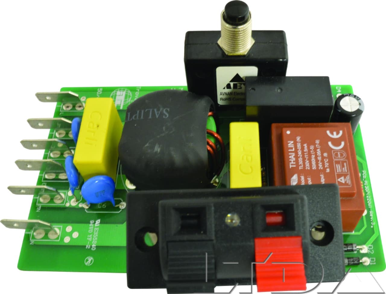 Carte électronique 240V 10A pour système daspiration centralisée. Platine compatible avec les centrales CYCLOVAC : GS95. GS115. GS125. E215. E715. H215. H615. H715.H 725. HD800. HD801. HD851E. HD850BE. HD851BE